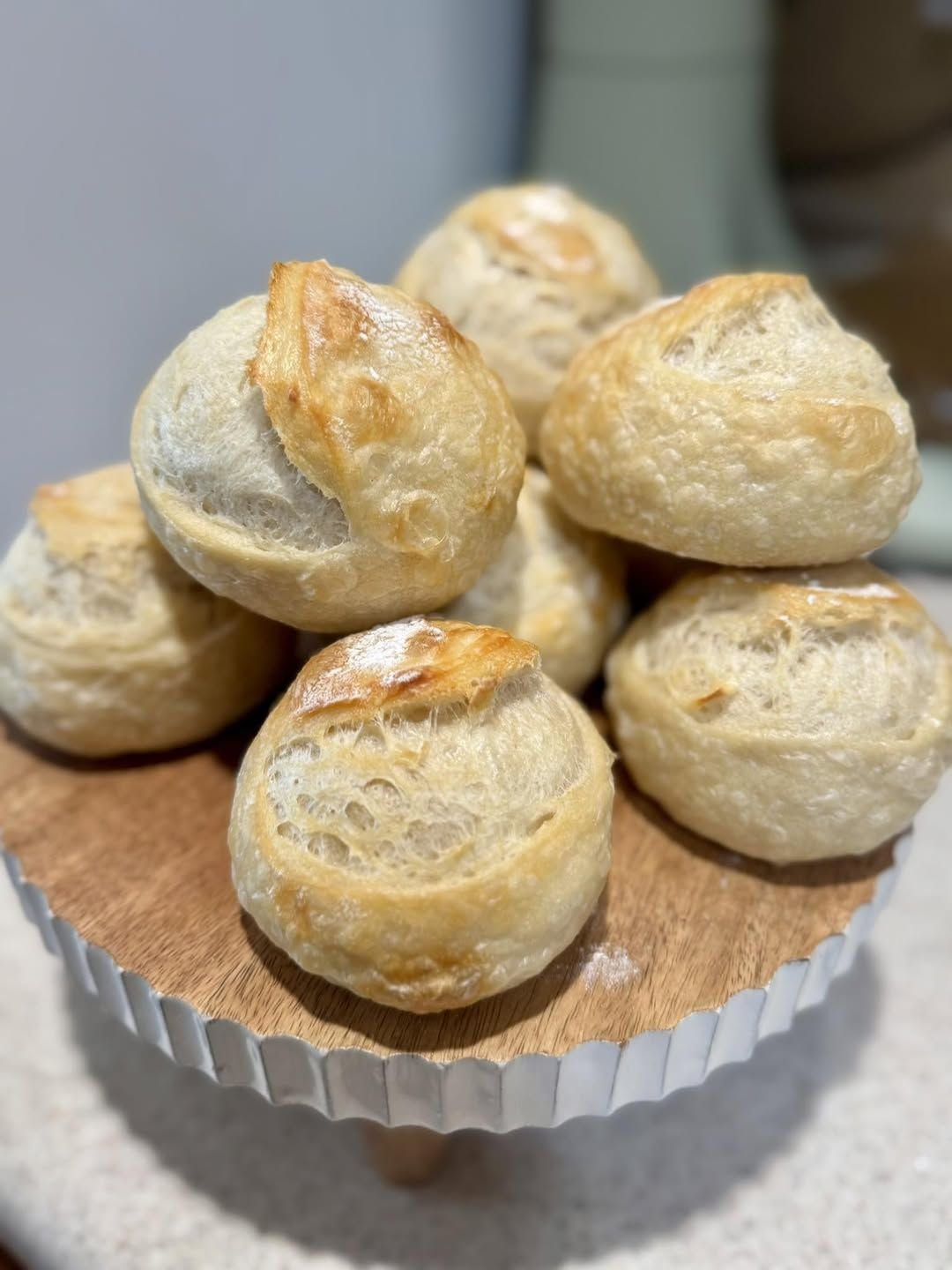 Ingridents (Makes 18 mini loaves): * 200g active starter* 625g water* 1000g bread flour* 20g salt Instructions: 1. Mix starter and water, then add flour and salt. Let rest 1 hour.2. Perform standard stretch and fold routine.3. Let dough bulk ferment until doubled.4. Divide into 18 equal pieces, shape, and place in a towel-lined muffin … Read more