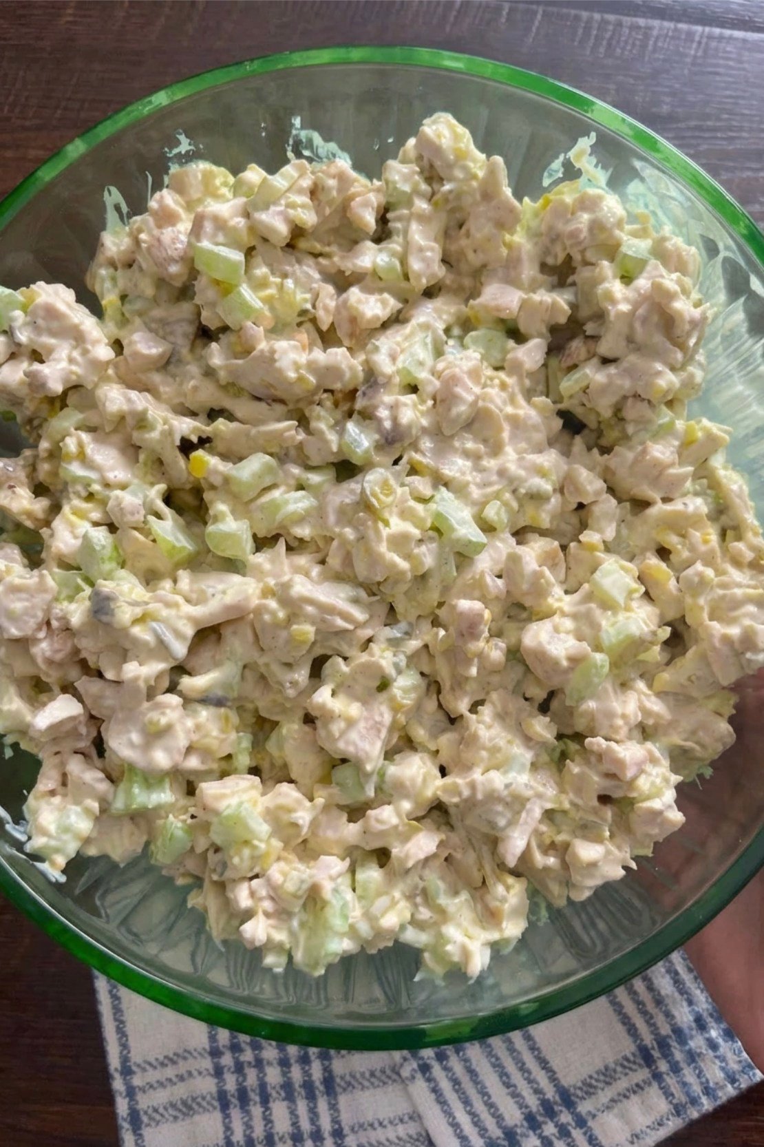 The vegetables add freshness, crunch, and important nutrients. Celery and onion bring flavor and texture that make the salad more interesting. The creamy dressing adds richness without making the dish too heavy when balanced properly.