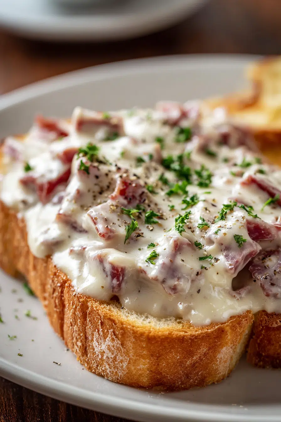 Creamed Chipped Beef on Toast is a classic comfort food that has been enjoyed for many years in many homes. This recipe is simple, warm, and very filling. It is made by cooking dried beef in a creamy white sauce and serving it over toasted bread. The sauce is smooth and rich, while the beef adds a salty and savory flavor. When poured over crispy toast, it creates a perfect combination of textures that is both soft and slightly crunchy. This dish may look simple, but it has a deep and comforting taste that makes it special. It is also easy to prepare, which makes it a great option for beginners.