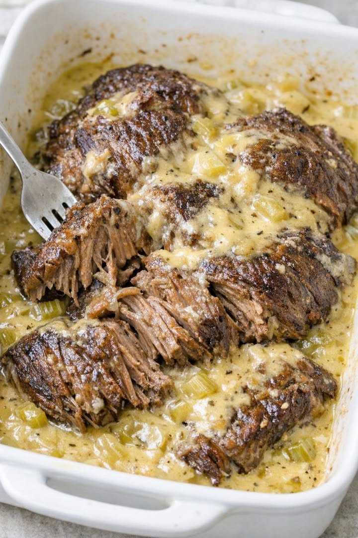 This creamy pot roast is also perfect for special moments with family and friends. You can serve it during weekend dinners, holidays, or even casual gatherings. It is a dish that brings people together because it is comforting and filling. Many people enjoy it with mashed potatoes, rice, or fresh bread. The creamy sauce blends well with these sides and makes the whole meal feel complete and satisfying. It is also a great recipe to make when you want to impress your guests without too much effort.