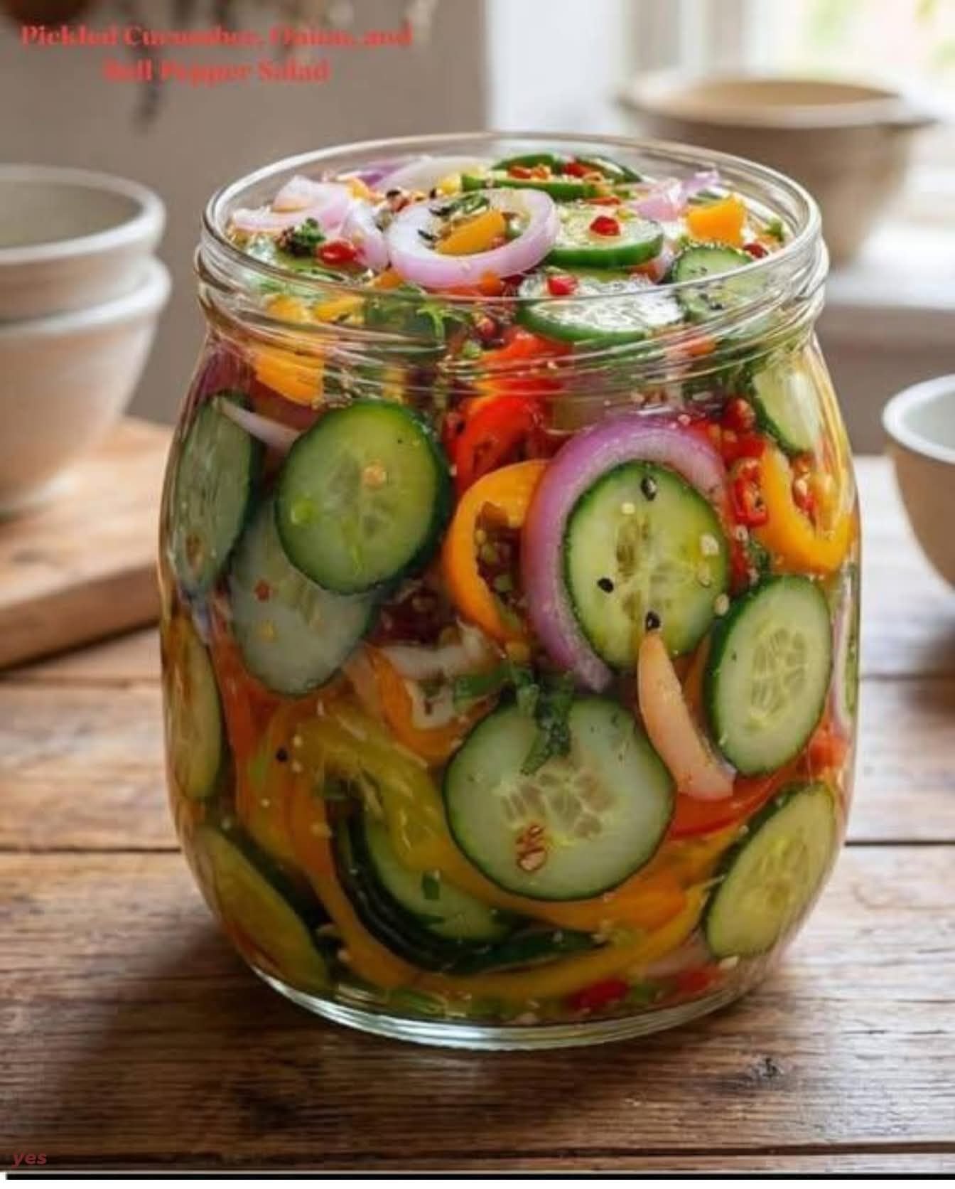 Quick Pickled Cucumber and Pepper Delight is a simple and refreshing recipe that anyone can make at home. It brings together fresh vegetables and a flavorful liquid in a very easy way. This dish is perfect for people who want something quick, healthy, and tasty. It fits well with many meals and can also be enjoyed alone. The bright colors and fresh taste make it a joy to eat. Once you try it, you will likely want to make it again and again. It is a great way to enjoy vegetables in a fun and delicious form.