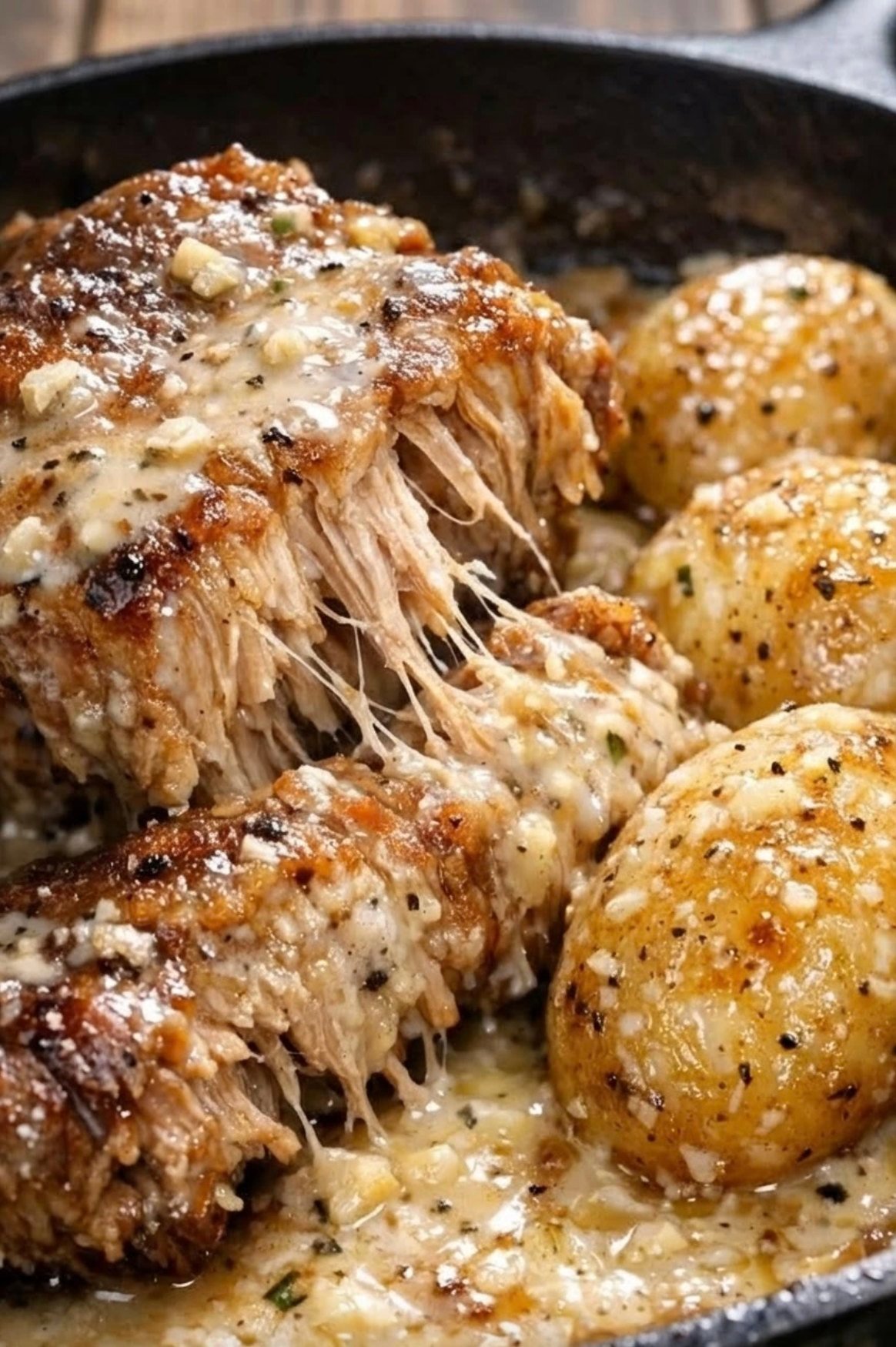 This recipe is special because it combines simple ingredients into a rich and satisfying meal. The slow cooking process makes the pork chops very tender and easy to eat. The potatoes absorb the creamy garlic sauce, making them full of flavor.