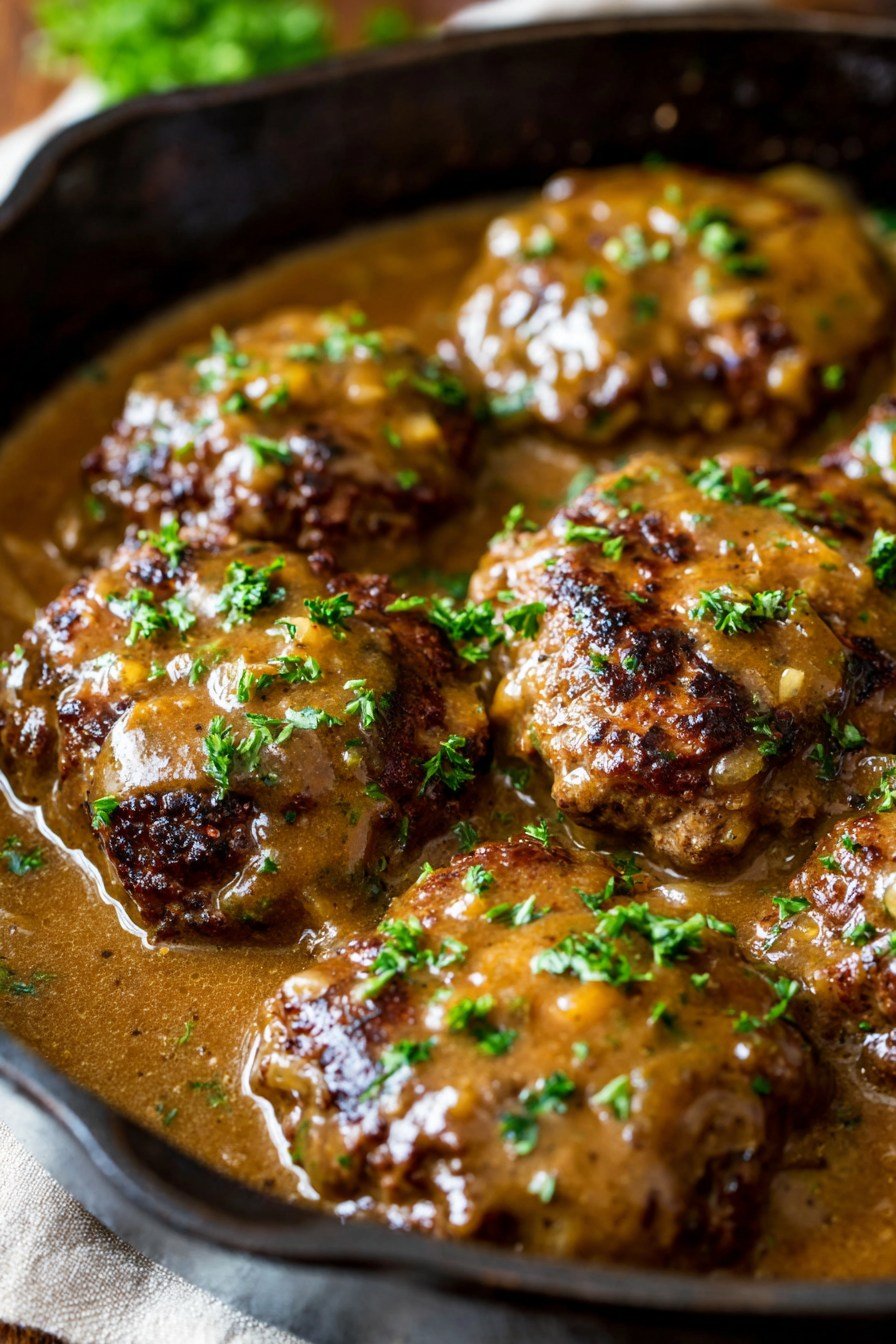 This recipe is special because it combines simple ingredients to create a rich and satisfying meal. The beef patties are juicy and full of flavor, while the onion gravy adds a smooth and savory taste. Together, they create a dish that feels comforting and complete.